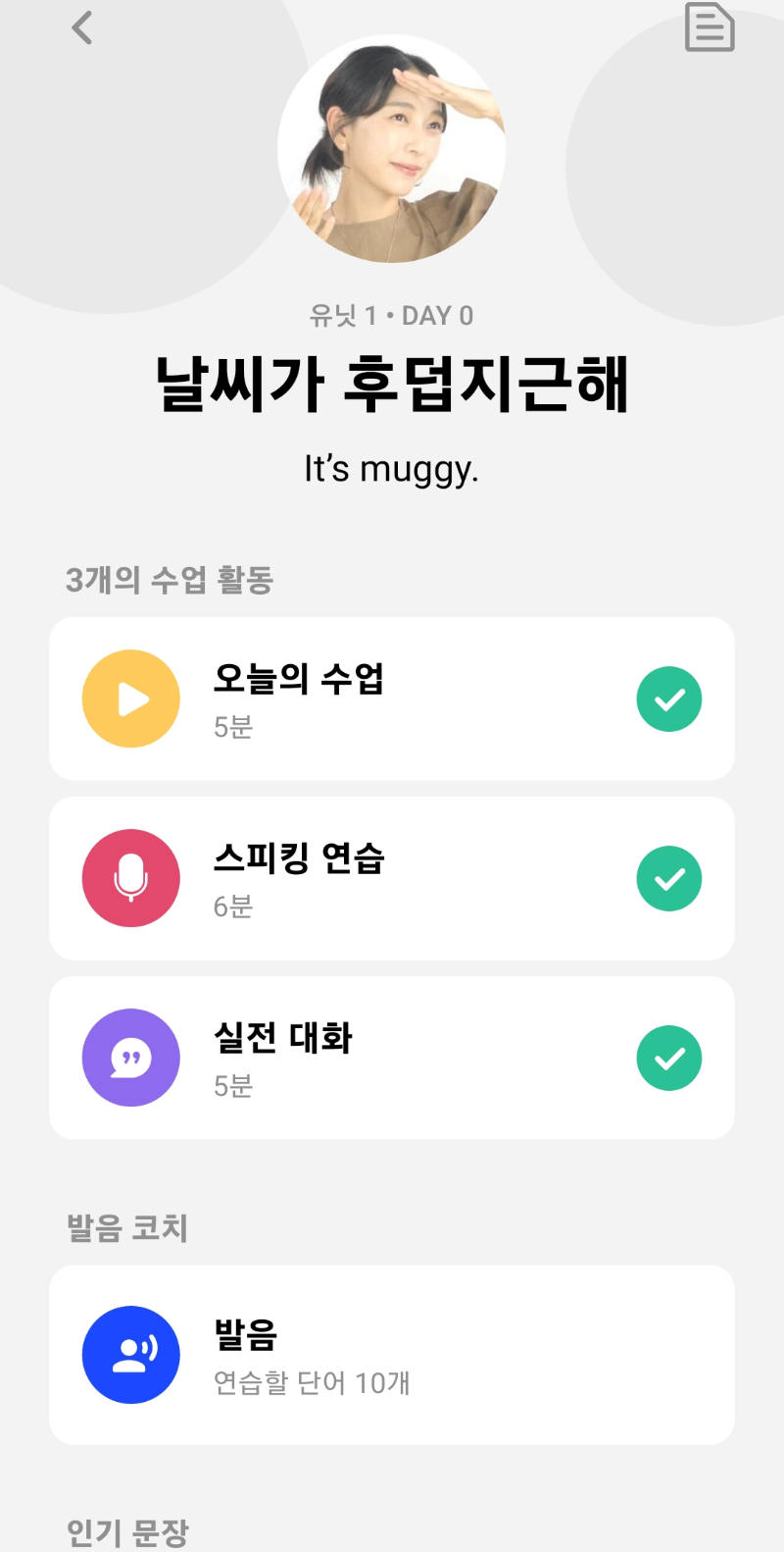 무료체험 기간동안 3일정도 왕초보영어 코스로 진행 했어요