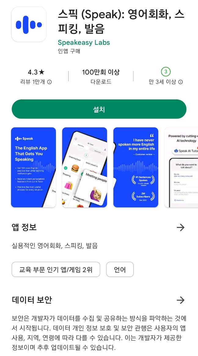 저희는 유료로 바꿨어요. 꾸준히만 할수 있다면 스피킹에 효과가 좋을 것 같아요