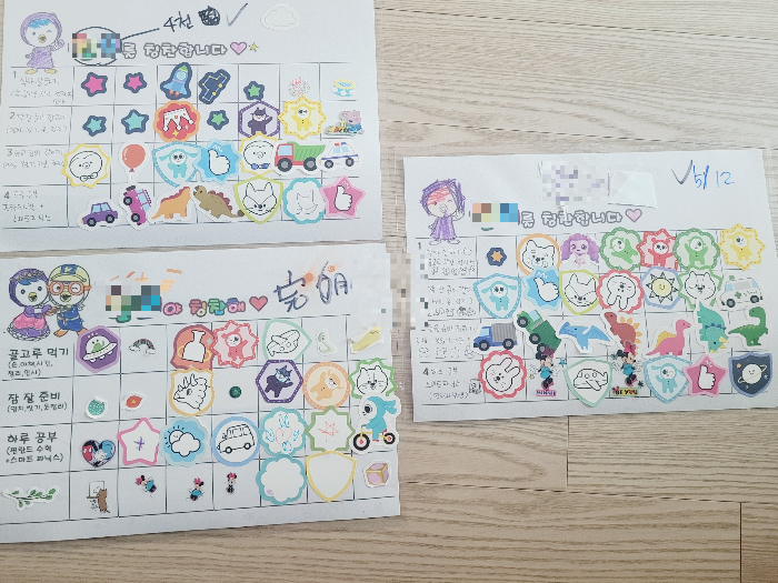 결론적으로 아이들한테 동기부여도 되고, 생활습관을 잘 자리 잡게 도움이 되었습니다. 물론 아직도 야채를 먹으려고 하진 않지만;; (한 입은 먹어보는 정도로 차차 나아지고 있는 것 같아서 그냥 지켜보고 있어요) 먹기 전 손 씻기와 먹과 나서 본인들 식기를 정리하고, 인사하는 정도는 자리 잡혔습니다. 지금 6살, 8살이 되었는데, 잘 자기 습관은 아직도 잘 자리 잡혀서 '잘 준비하자~' 이러면 당연하게 양치하고, 손 발 닦고, 잠옷으로 갈아입고 입은 옷은 빨래통에 넣는 거라고 생각하며 아주 아주 잘하고 있습니다.