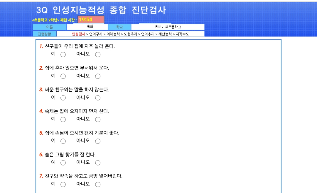 - 검사영역: 인성(감정상태, 정서상태 등), 지능(언어·수리·공간), 적성(14개 계열 적성)