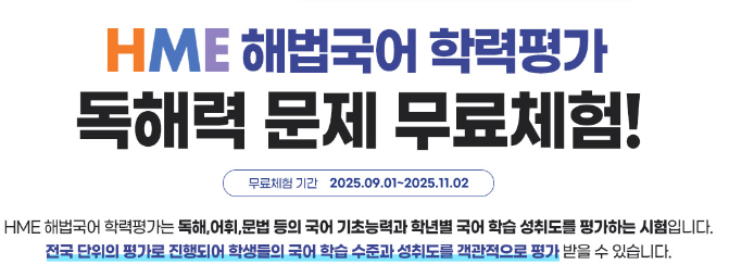 HME 수학 국어 학력평가 하반기 접수자 혜택