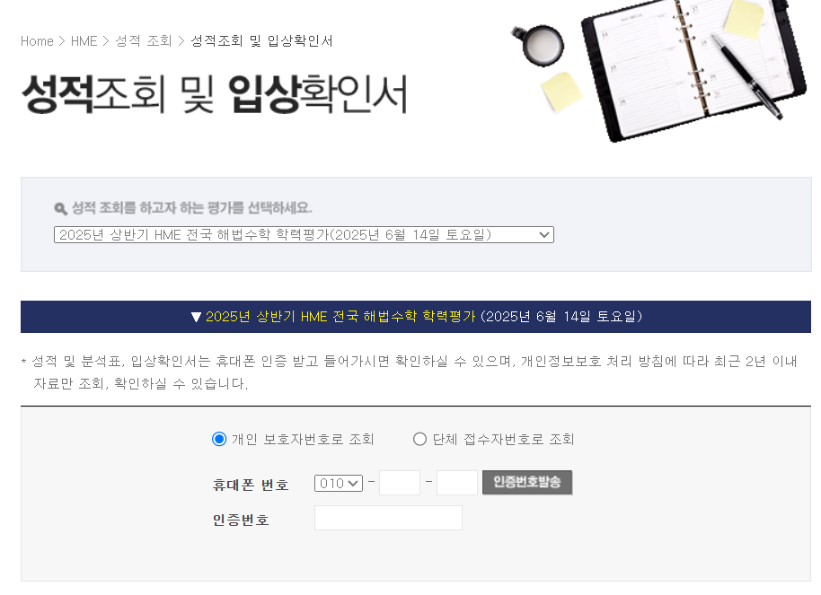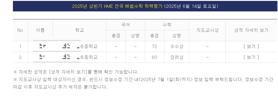 2025 HME 수학 학력평가 결과확인하러 가기
